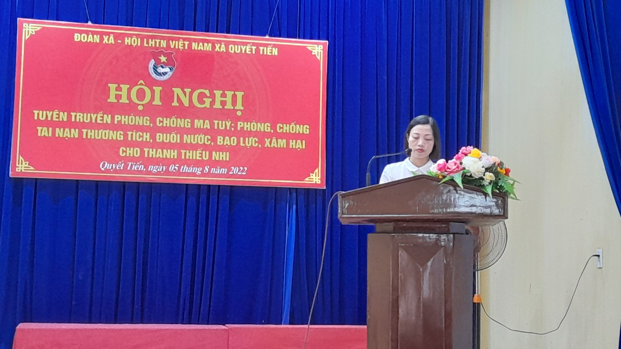 Qua bài tuyên truyền ngày hôm nay cô mong muốn toàn thể các em học sinh xã QT nói riêng và trẻ em trên toàn thế giới nói chung sẽ quyết ngăn chặn, bài trừ tận gốc các tệ nạn ra khỏi cuộc sống và có các kĩ năng phòng chống thật tốt để đem lại sự bình yên cho bản thân, cho gia đình và đảm bảo trật tự, an toàn xã hội./.