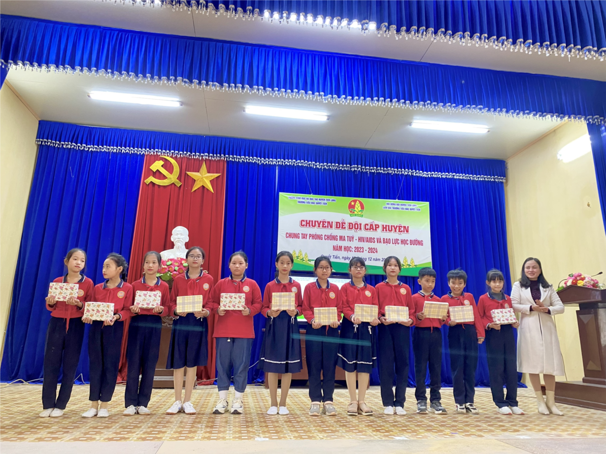 Thực hiện kế hoạch nhiệm vụ năm học 2023-2024 của trường tiểu học Quyết Tiến, được sự nhất trí chỉ đạo của PGD&ĐT; Ban thường vụ huyện Đoàn - Hội đồng Đội huyện Tiên Lãng, hôm nay Liên Đội trường Tiểu học Quyết Tiến tổ chức hoạt động chuyên đề “Chung tay phòng, chống Ma túy- HIV/AIDS và bạo lực học đường”.