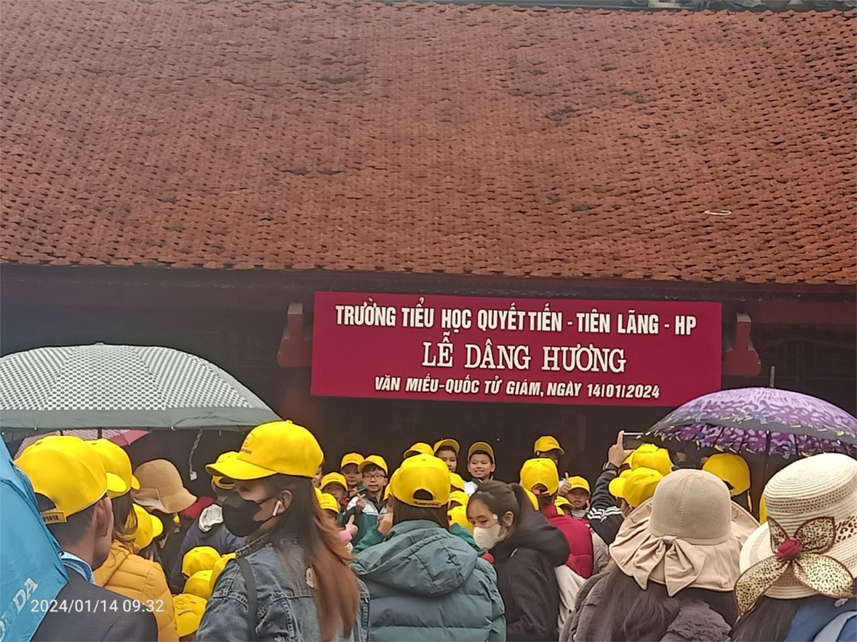 Thực hiện kế hoạch năm học 2023 -2024 và góp phần thực hiện tốt chương trình Giáo dục phổ thông 2018, nhằm giáo dục đạo lý “ Uống nước nhớ nguồn” đồng thời tuyên truyền cho học sinh những truyền thống tốt đẹp của dân tộc ta, giúp các em được tiếp cận thực tế, khai thác những kinh nghiệm đã có và tổng hợp những kiến thức kĩ năng của các môn học và hoạt động giáo dục để thực hiện những nhiệm vụ được giao và giải quyết những vấn đề thực tiễn của cuộc sống. Thể theo nguyện vọng của các bậc phụ huynh và các em học sinh, được sự nhất trí của Phòng GD&ĐT huyện Tiên Lãng, ngày 14/01/2024 nhà trường và Liên đội trường Tiểu học Quyết Tiến đã phối hợp với công ty du lịch Nguyễn Kim – đơn vị chuyên tổ chức các hoạt động ngoài giờ chính khóa, giáo dục trải nghiệm và giáo dục Stem, tổ chức chương trình trải nghiệm tại Văn Miếu Quốc Tử Giám, khu bảo tàng Quân đội và khu trải nghiệm Erahouse tại Hà Nội.