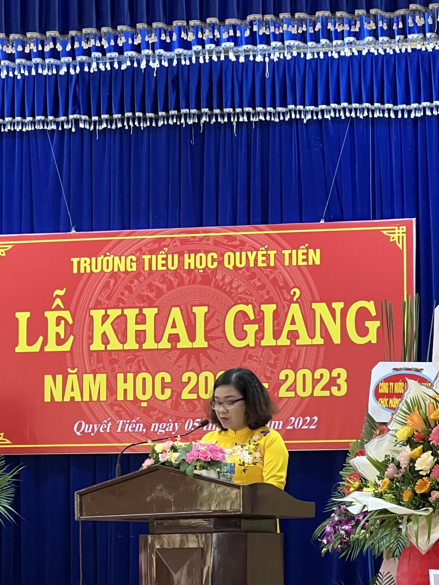 Thay mặt hội đồng sư phạm cùng 430 em học sinh toàn trường, cô Vũ Thúy Hồng - Bí thư Chi bộ, hiệu trưởng nhà trường cảm ơn sự quan tâm sâu sắc của các cấp chính quyền, các Ban ngành đoàn thể, các cơ quan và phụ huynh học sinh đối với thầy và trò trường Tiểu học Quyết Tiến.
